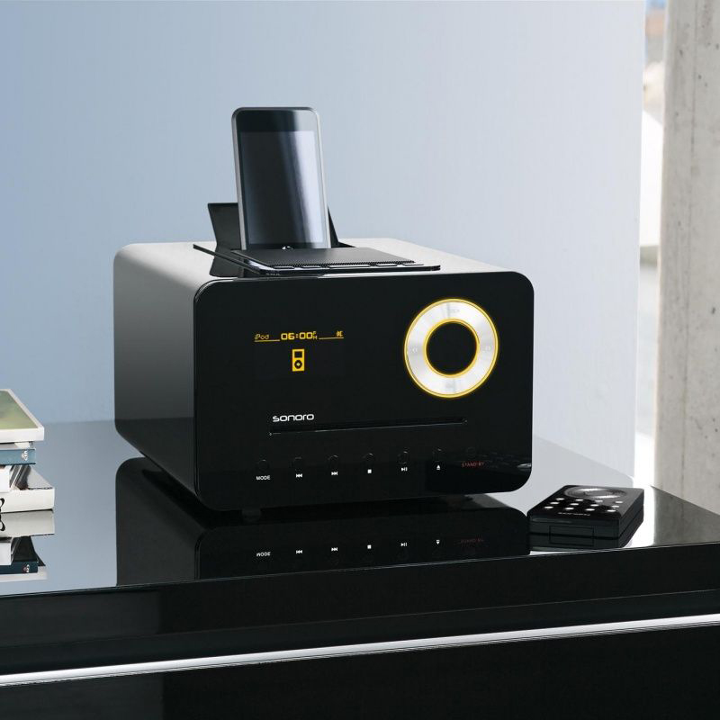 Elegant and compact docking station for iPhone / iPod. This versatile system also plays DVD, CD, music from USB and FM-radio