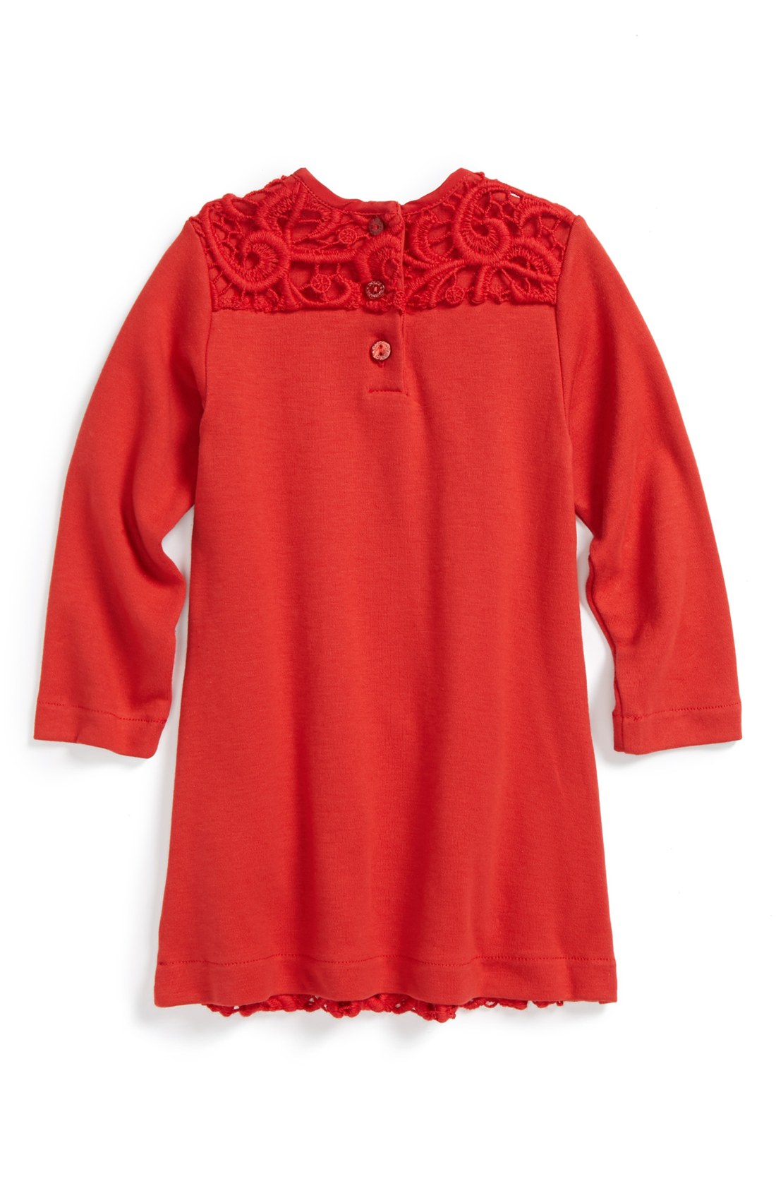 Lace front, lace yoke on the back. Fastens on 3 buttons.